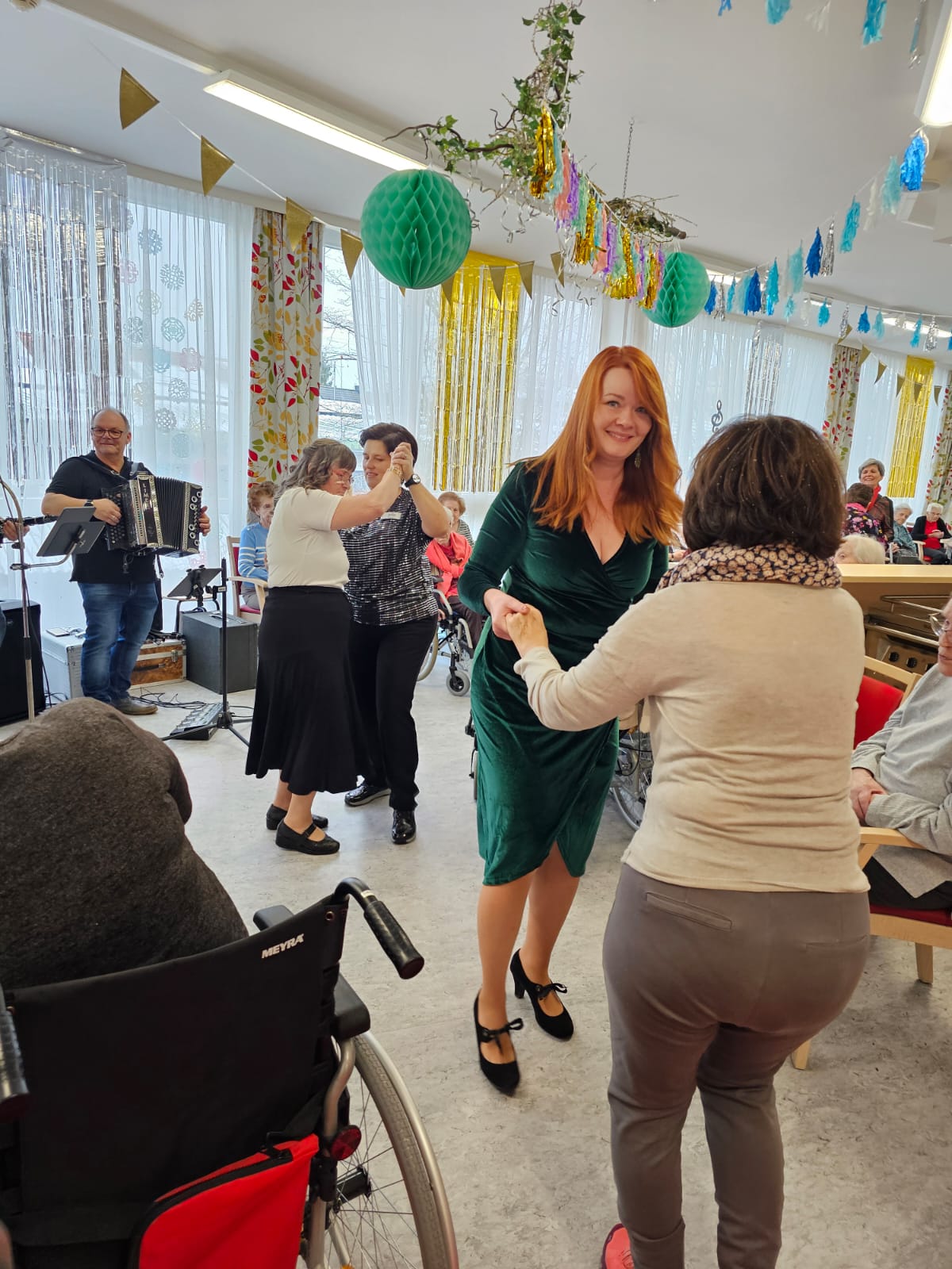 „Alles Walzer“ hieß es kürzlich im SeneCura Sozialzentrum Söchau. Bereits am Vormittag begannen die Vorbereitungen für den traditionellen Hausball. Die Friseurin zauberte Ballfrisuren samt Glitzerhaarspray, der rote Teppich wurde ausgerollt und der Sekt kalt gestellt. Um 14:30 Uhr eröffnete die „Vulkanpartie“ den Nachmittag mit schwungvollen Stücken und die Tanzfläche war von Beginn an gut besucht. Als Highlight durften wir noch unserer Bewohnerin Auner Josefine und unserer Mitarbeiterin Hildegard Gartner mit einem lautstarken Happy Birthday zum Geburtstag gratulieren. Auch unseren Bürgermeister Josef Kapper durften wir herzlich begrüßen bevor er sich unter die feiernden Gäste mischte.