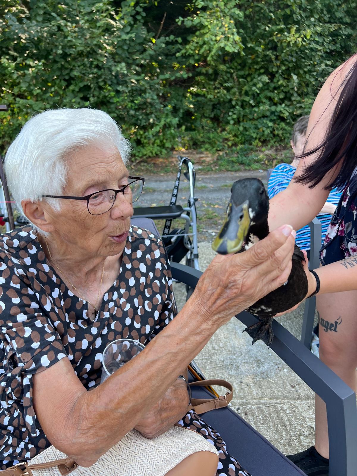 Auf Einladung zweier Mitarbeiterinnen des Hauses machten einige Bewohner:innen des SeneCura Sozialzentrums Söchau kürzlich einen Ausflug zur kleinen Farm der Beiden. Bei Kaffee, köstlichem Kuchen und kühlen Getränken konnten die Tiere bestaunt und gestreichelt werden. Corina und Melissa, die tierliebenden Besitzerinnen, kennen jedes ihrer vielen Tiere beim Namen und kümmern sich liebevoll um ihre Schützlinge. Die Seniorinnen und Senioren genossen den lustigen Nachmittag und es war für sie ein besonderes Erlebnis zwei Mitarbeiterinnen zu Hause zu besuchen.