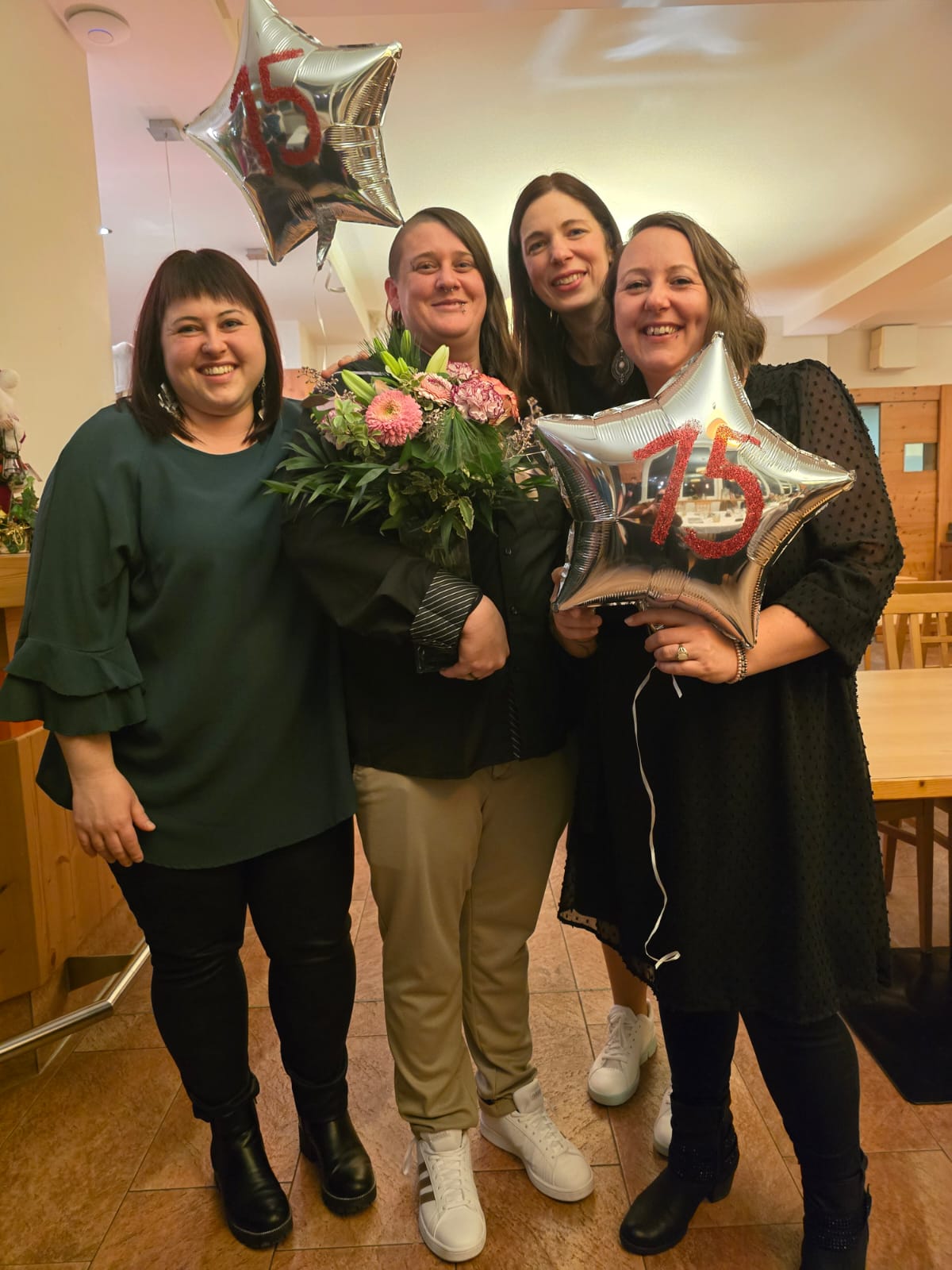 Eine riesen Überraschung vom gesamten Team samt Konfettikanonen gab es noch für die Hausleitung Kerstin Grabenhofer. Da auch sie heuer ihr 10-jähriges Dienstjubiläum feiern durfte, wurde sie vom gesamten Team mit einem großen Straus Luftballons, einer riesigen Urkunde und einem Wellness Gutschein überrascht. „An dieser Stelle möchte ich mich nochmal beim gesamten Team Söchau bedanken. Ich bin sehr dankbar und stolz mit euch arbeiten (und manchmal auch feiern) zu dürfen – ihr seid großartig!“, bedankt sich Kerstin Grabenhofer herzlich.