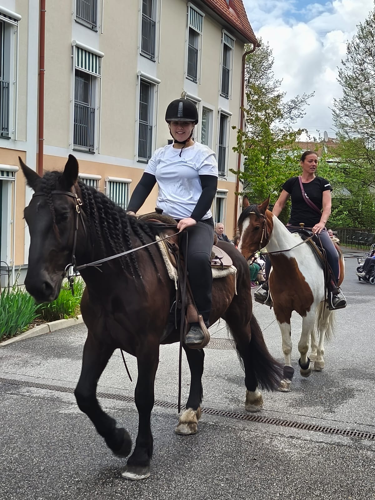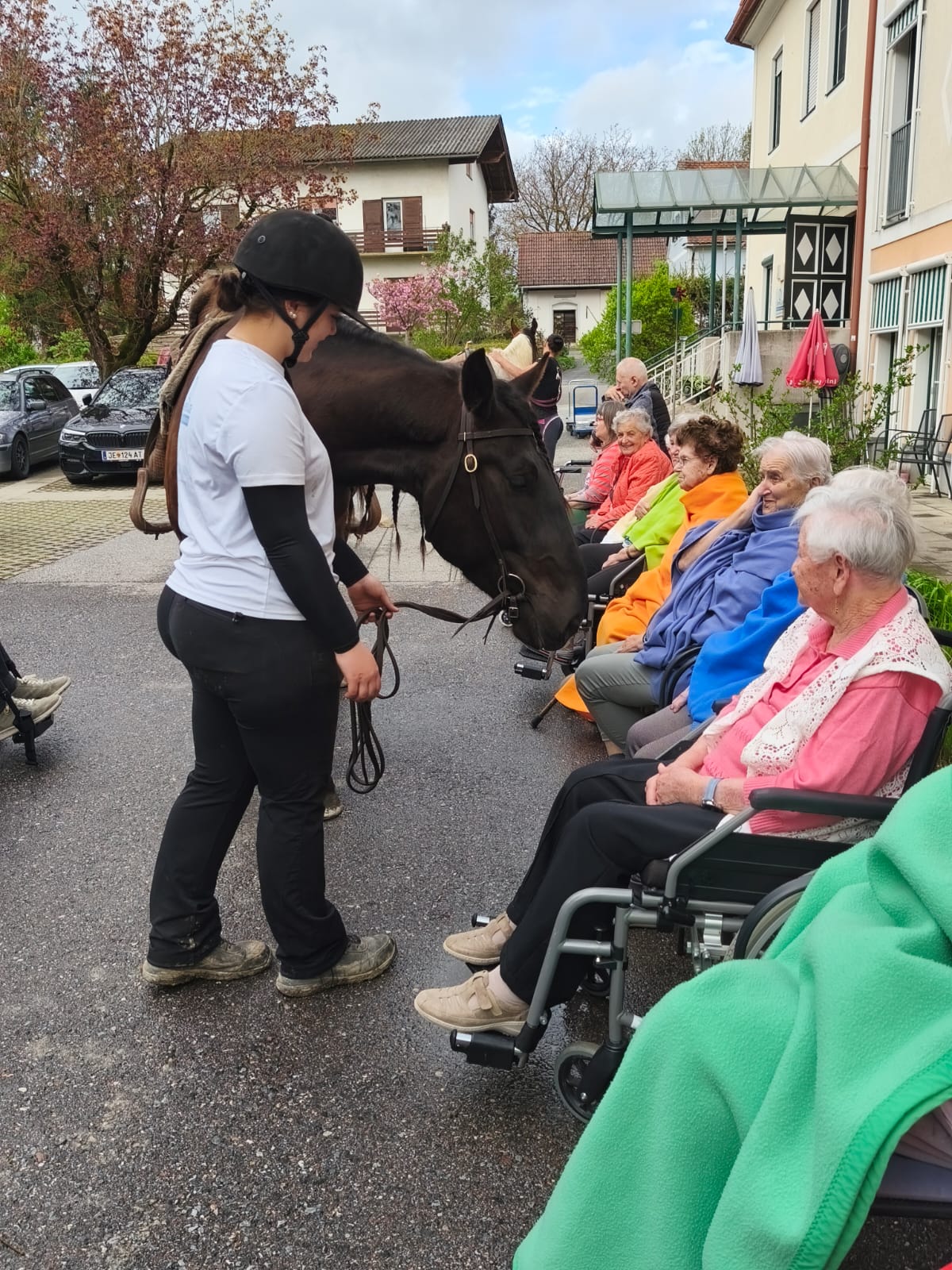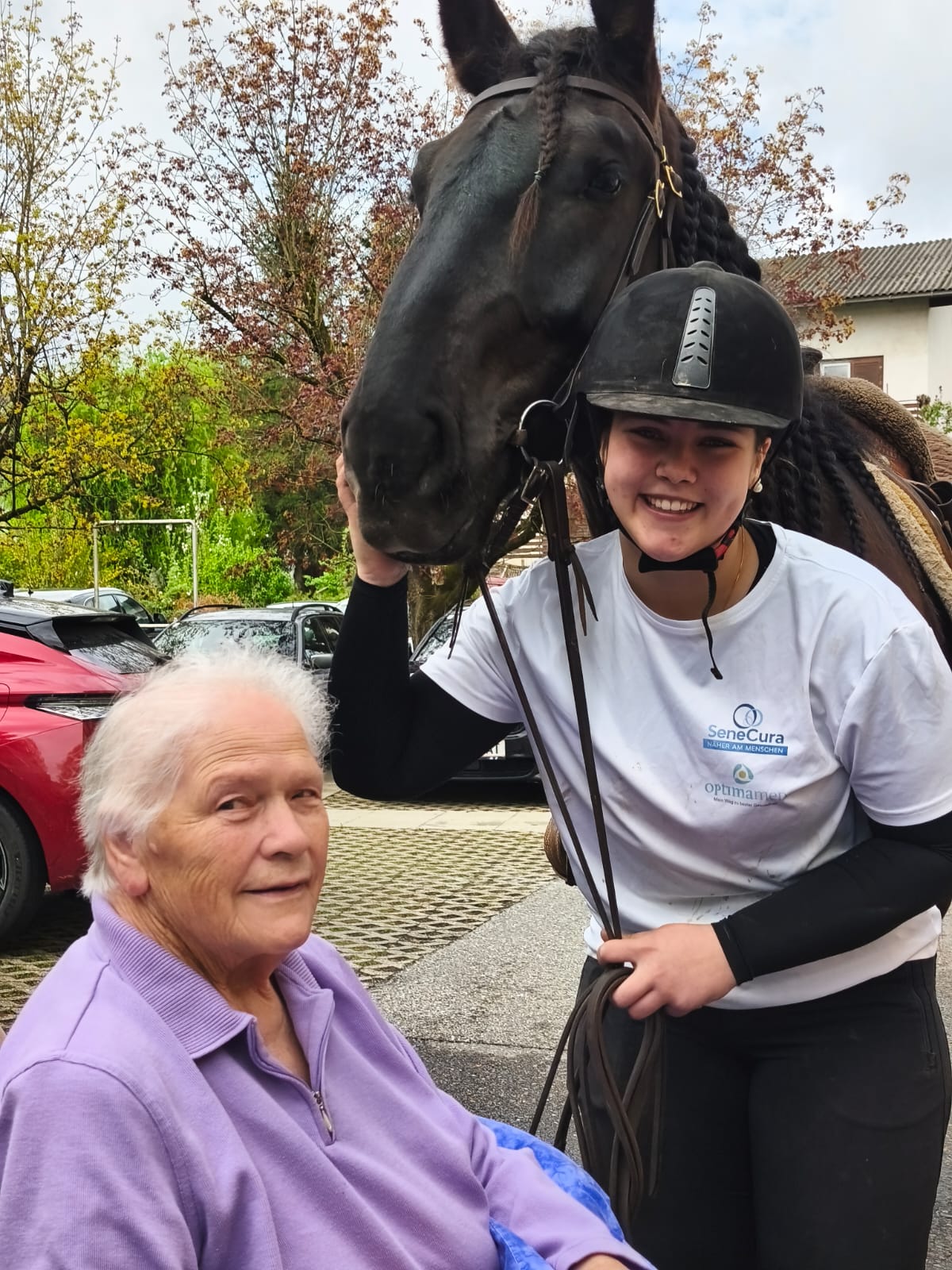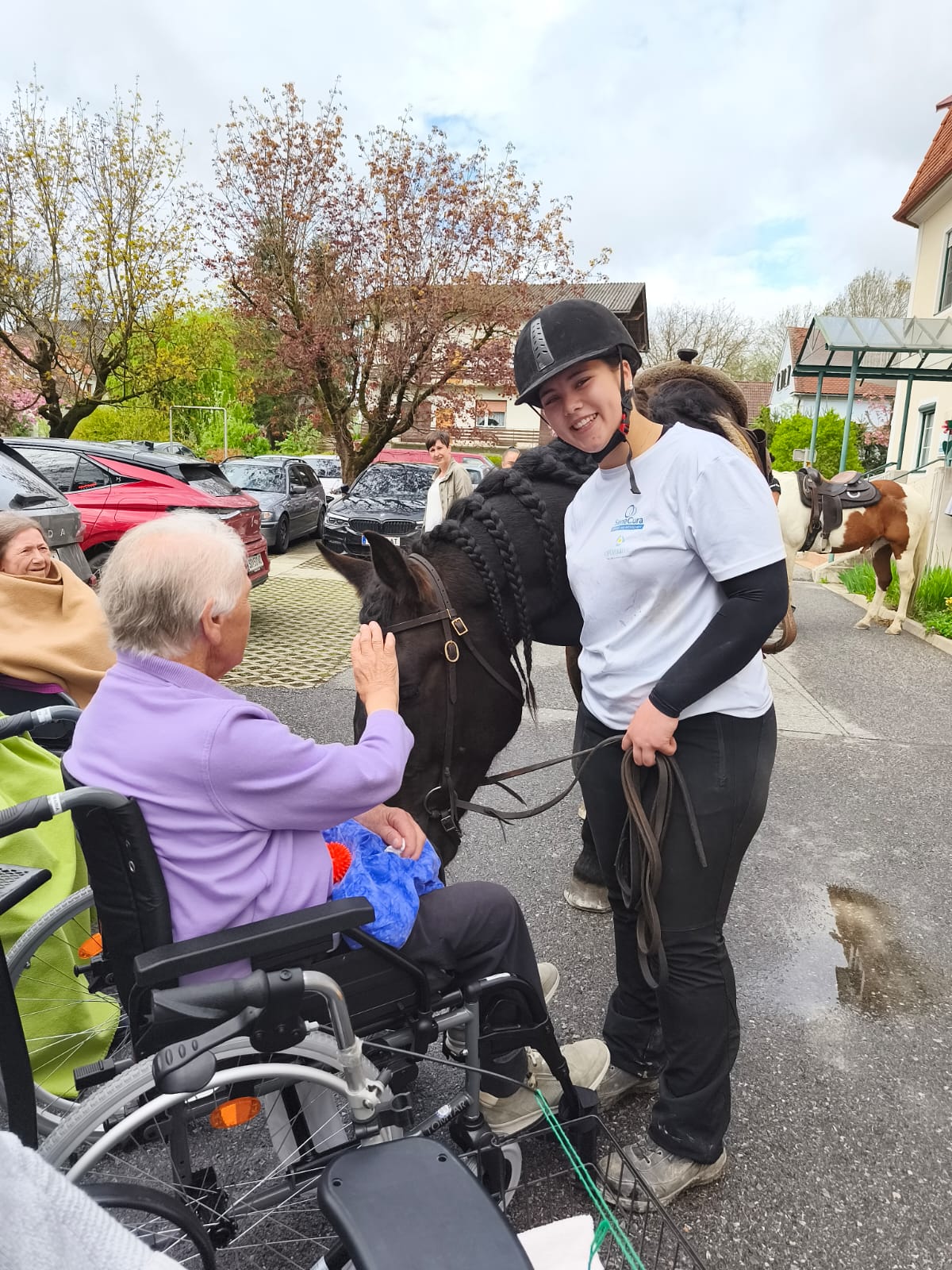 Kürzlich überraschte der Lehrling Laura gemeinsam mit ihrer Mama die Bewohnerinnen und Bewohner des SeneCura Sozialzentrums Söchau mit einem Besuch ihrer Pferde. Gemeinsam mit Amigo und Sancho sind sie im Garten eingeritten und sorgten für Staunen. Die Bewohner:innen hatten die Möglichkeit, auf Tuchfühlung mit den Tieren zu gehen und diese genossen die Streicheleinheiten sichtlich.