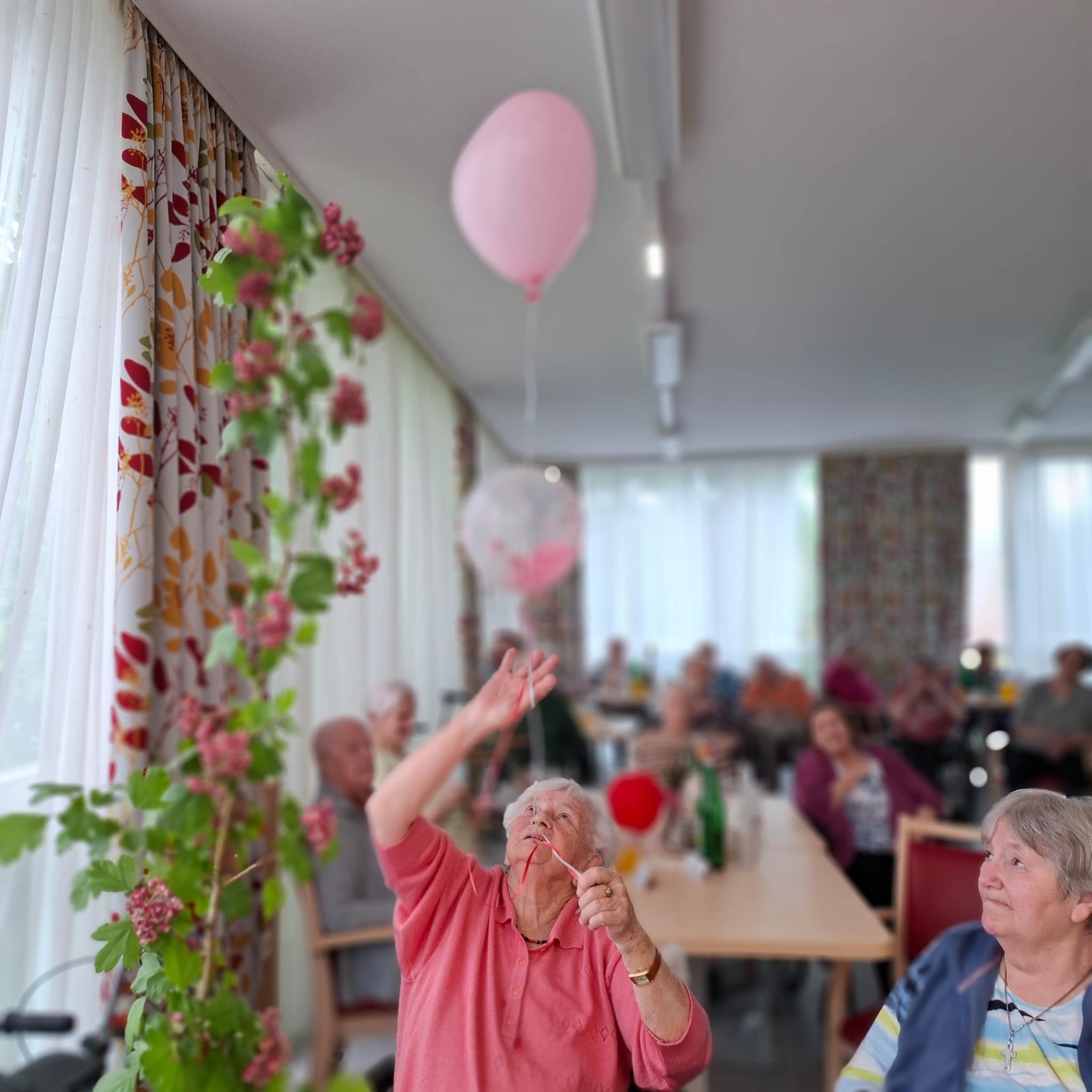 Ein rauschendes Fest feierte das SeneCura Sozialzentrum Söchau zu Ehren der Mütter am 09. Mai. Schon das Dekorieren mit unzähligen Luftballons sorgte für lustige Stimmung im Speisesaal. Am Nachmittag durften wir dann „Lena & Joana“ auf der „Herzerlbühne“ begrüßen, die für einen musikalisch schwungvollen Nachmittag sorgten. Es wurde getanzt, gelacht und ausgelassen gefeiert. Alle Bewohner:innen erhielten zur Feier des Tages einen süßen Krapfen.