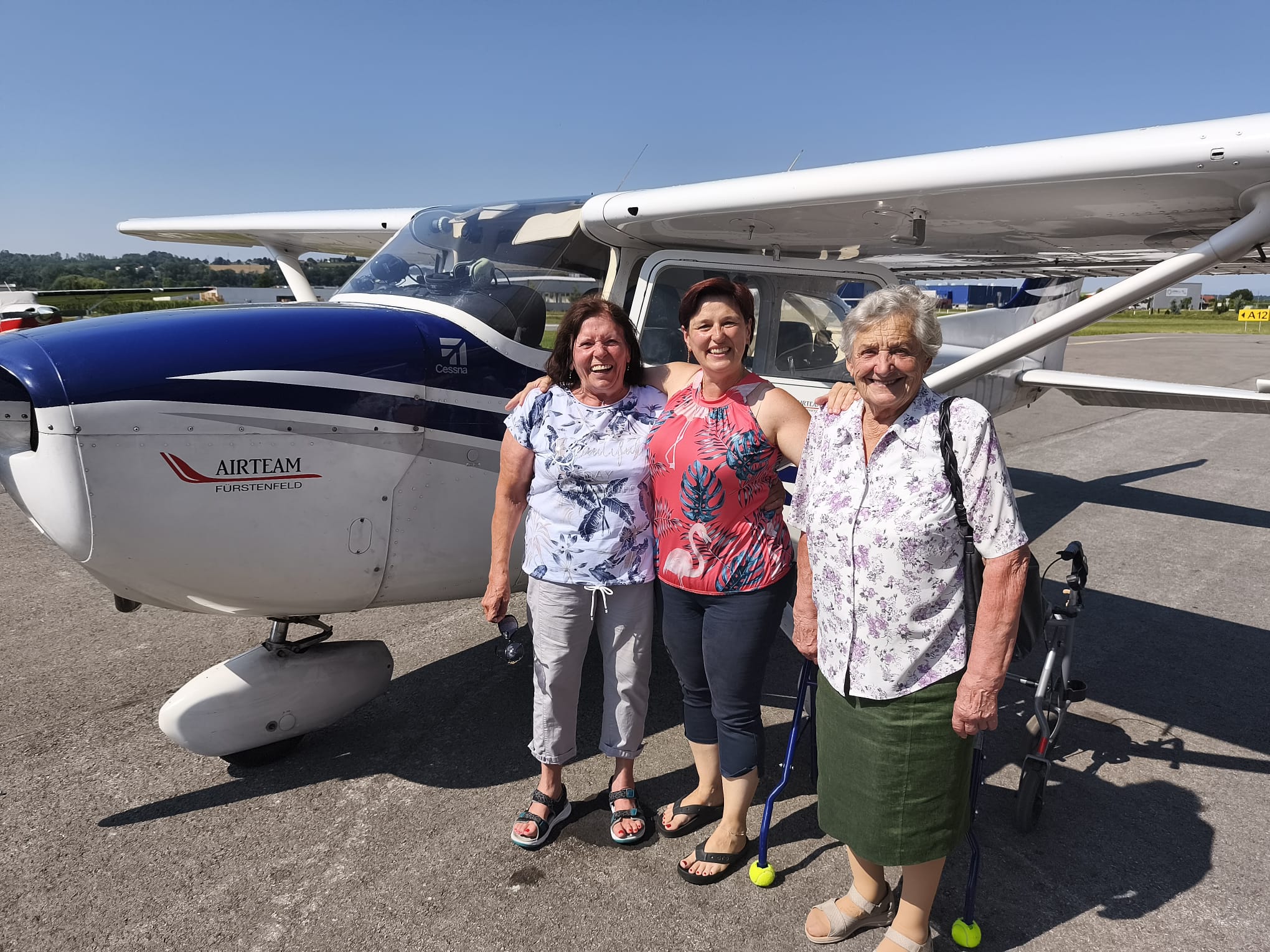 Für riesige Freude und bleibende Erinnerungen sorgte das SeneCura Sozialzentrum Söchau bei den Bewohnerinnen Franziska Trummer und Gisela Kasper. Mit einem Rundflug über die Oststeiermark wurde den beiden Bewohnerinnen ein Herzenswunsch erfüllt. Das Airteam Fürstenfeld nahm die beiden Damen begleitet von Animateurin Anita Auner herzlich in Empfang und startete nach kurzer Erklärung und Einführung in luftige Höhen. Der Ausblick war atemberaubend und sorgte bei Frau Kasper für Freudentränen. Auch der Pilot war hingerissen von unseren Bewohnerinnen und meinte, er hätte noch nie einen solch amüsanten Flug erlebt. Mit vielen Erinnerungen im Gebäck wurden Frau Trummer und Frau Kasper nach geglückter Landung zu einem Mittagessen von Animateurin Anita in Fürstenfeld eingeladen.